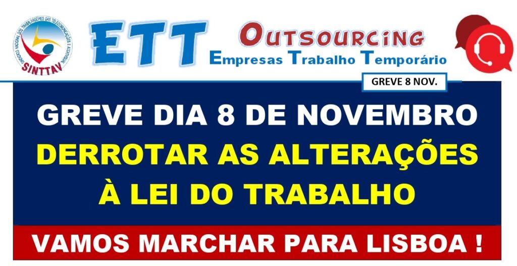 GREVE DIA 8 DE NOVEMBRO – DERROTAR AS ALTERAÇÕES À LEI DO TRABALHO